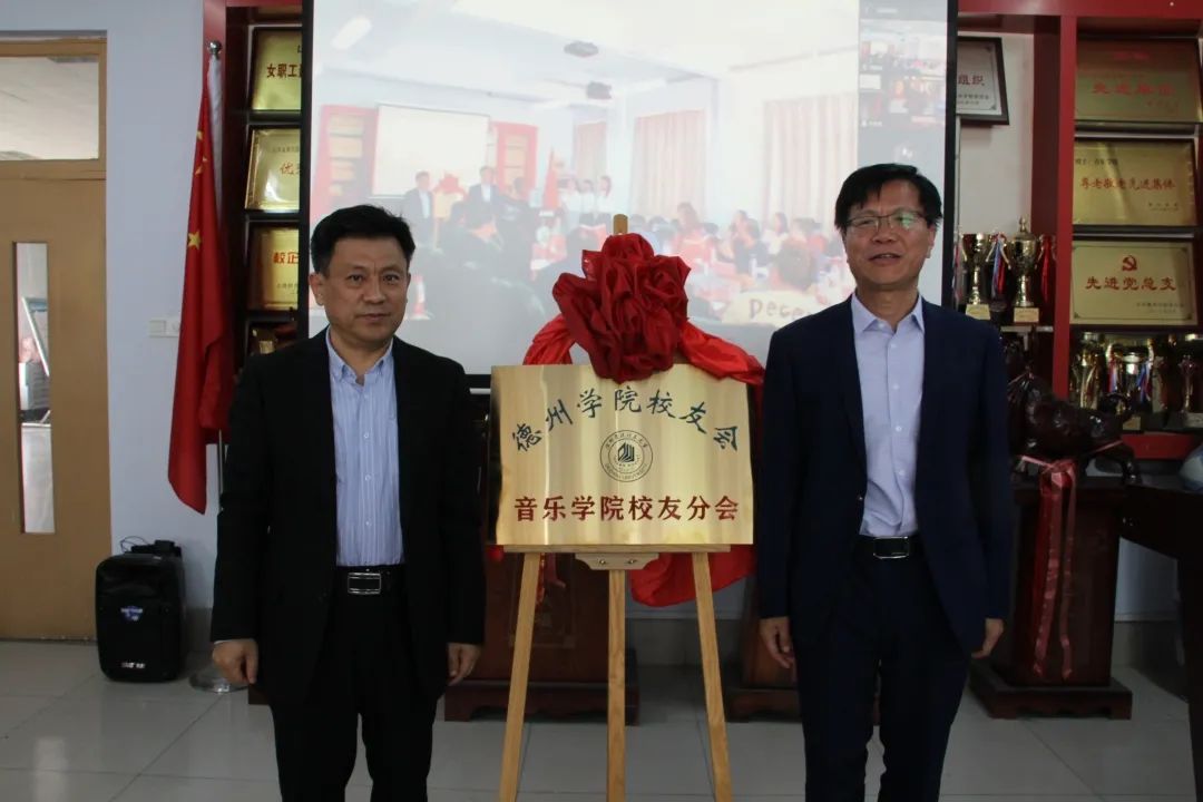 德州学院合作发展处处长高国武与音乐学院党总支书记刘志华为“德州学院音乐学院校友分会”揭牌,音乐学院校友分会正式成立。
