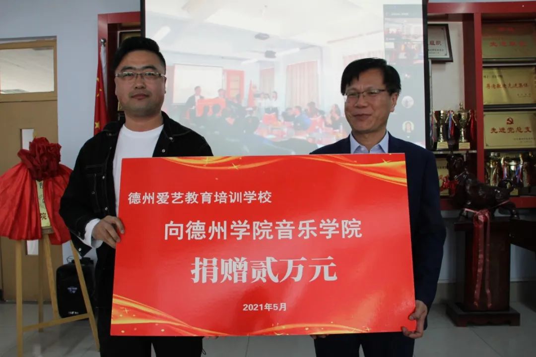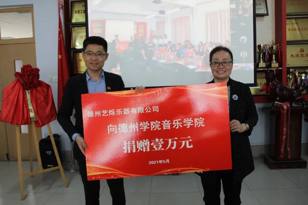会上还举行了音乐学院校友捐赠仪式。音乐学院2009届校友孙建与2012届校友司福山上台捐赠,音乐学院党总支书记刘志华与院长田屹代表学院接受捐赠。