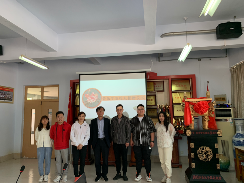 为了庆祝德州学院建校五十周年并回馈母校的栽培,5月10日,三名校友回到音乐学院,代表2013级音乐学三班校友进行捐赠,以此来表达对母校深深的思念之情和感恩之心。捐赠仪式活动在学院会议室举行,党总支书记刘志华、党总支副书记贺昱、团总支书记陈璨、辅导员李曼宁参加仪式。