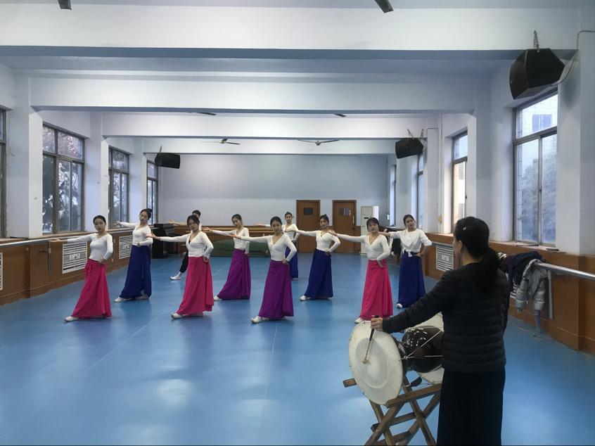 学生们在金教授的悉心指导下,学会了韩国传统舞蹈古格里、扎津毛里以及扇子舞。韩国扇子舞是一种没有特定的形式,以兴、韵、神明相融合的舞蹈,开阔了学生们的眼界,增强了大家的技能知识。