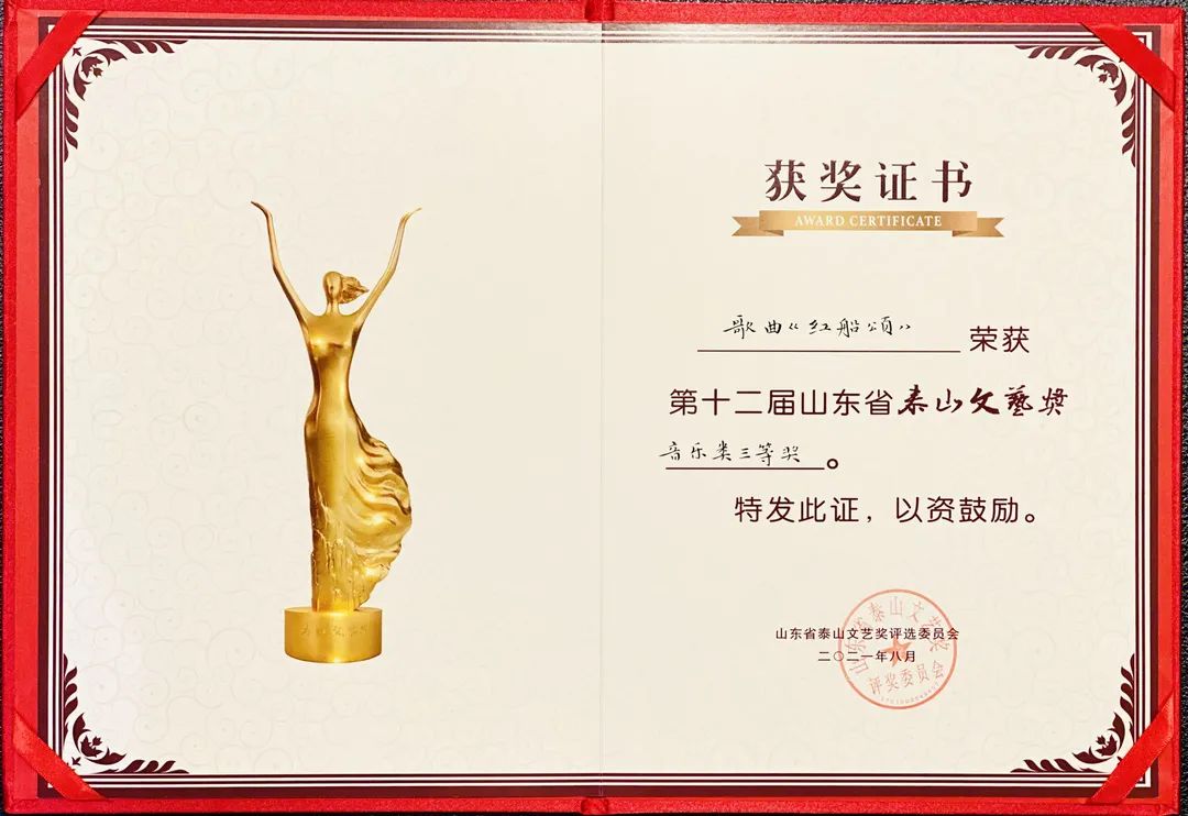 近日,山东省文艺界最高奖--山东省第十二届“泰山文艺奖”获奖名单公布,我院教师李琛老师所创作的原创歌曲《红船颂》,荣获音乐类作品三等奖。
