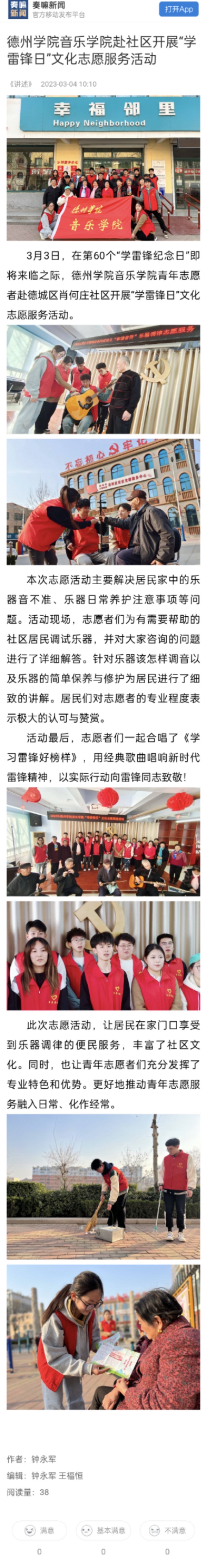 【德州广播电视台】德州学院音乐学院赴社区开展“学雷锋日”文化志愿服务活动