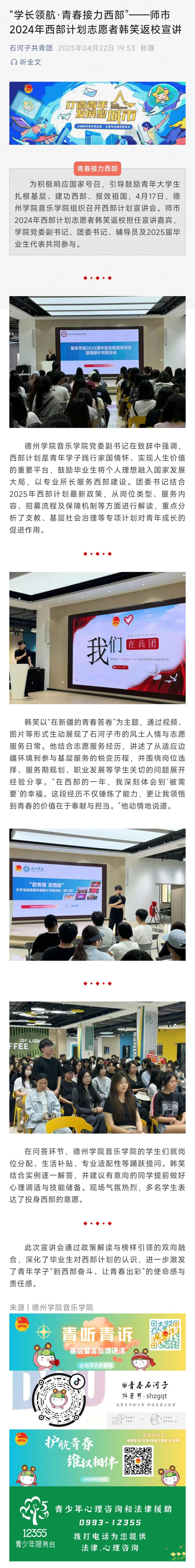 【石河子共青团】“学长领航·青春接力西部”——师市2024年西部计划志愿者韩笑返校宣讲