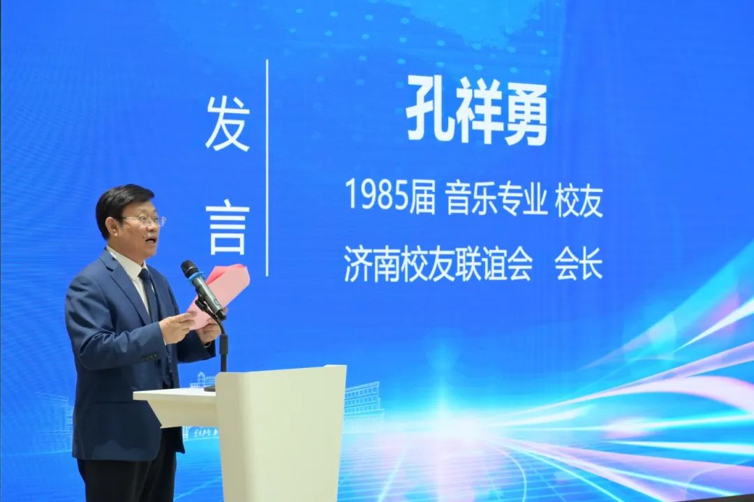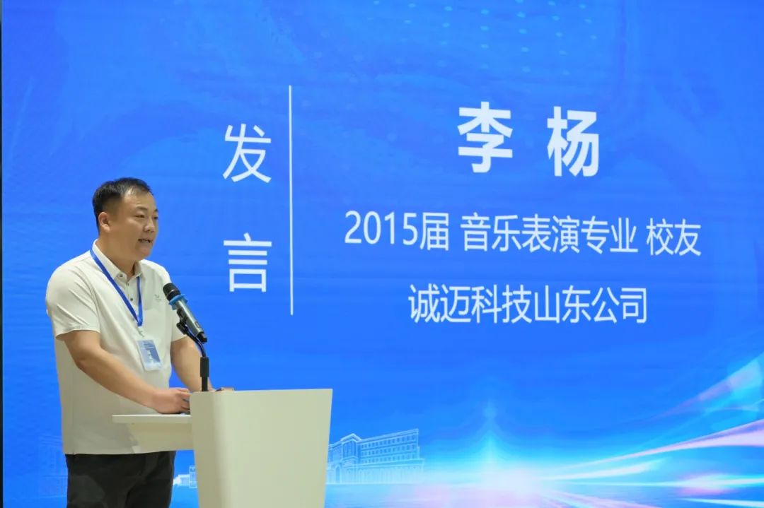 在校级高质量发展论坛中,音乐学院校友代表积极发声。1985届音乐专业校友、济南校友联谊会会长孔祥勇作为地方联谊会代表,结合艺术教育领域经验,围绕学科建设与产教融合建言献策。2015届音乐表演专业校友、诚迈科技山东公司总经理李杨作为企业界代表,分享艺术与科技跨界融合的创新实践,并代表企业向学校捐赠校友基金,助力母校发展。
