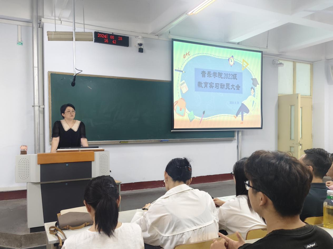 为确保学院2022级师范生教育实习工作的顺利开展,8月28日下午,音乐学院召开师范生教育实习动员大会。音乐学院党政领导,实习指导教师及2022级实习生参加了本次会议。