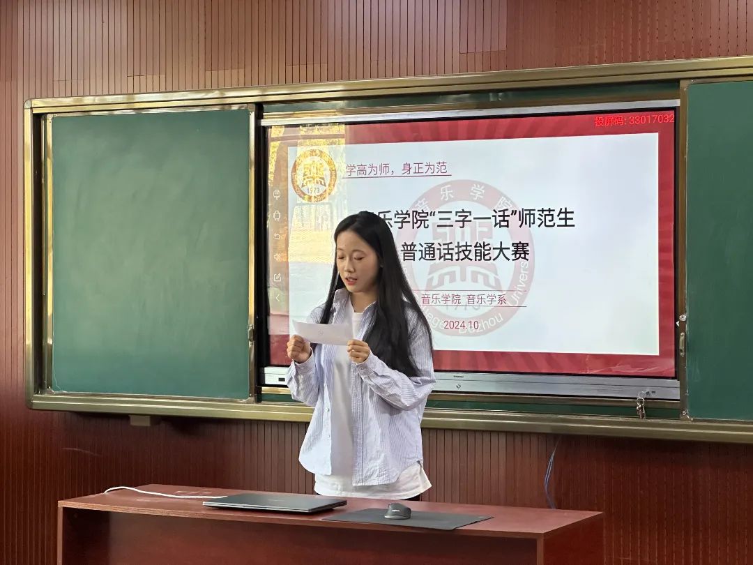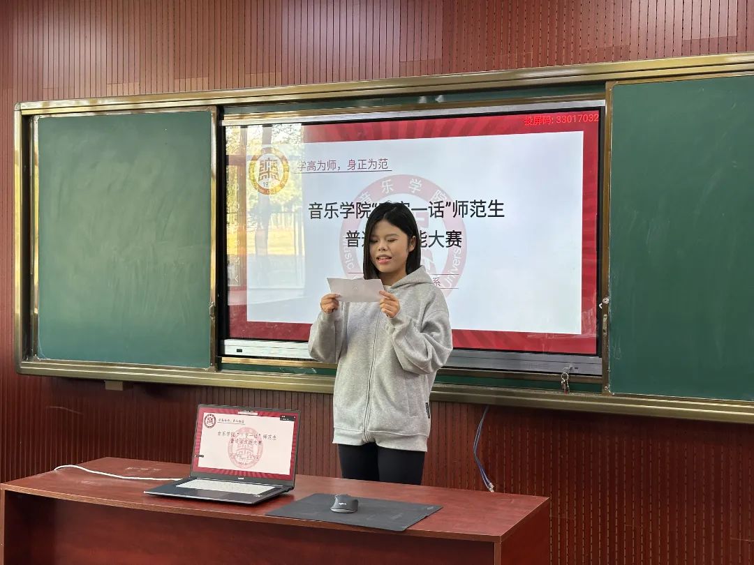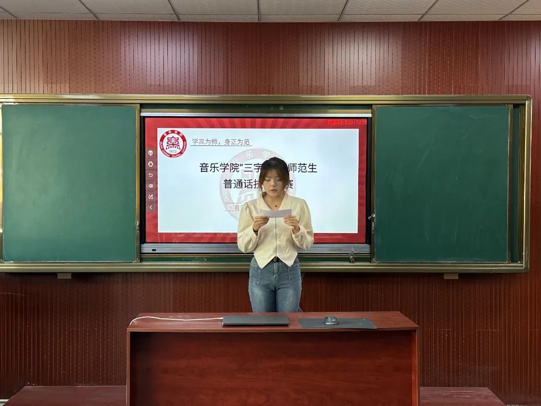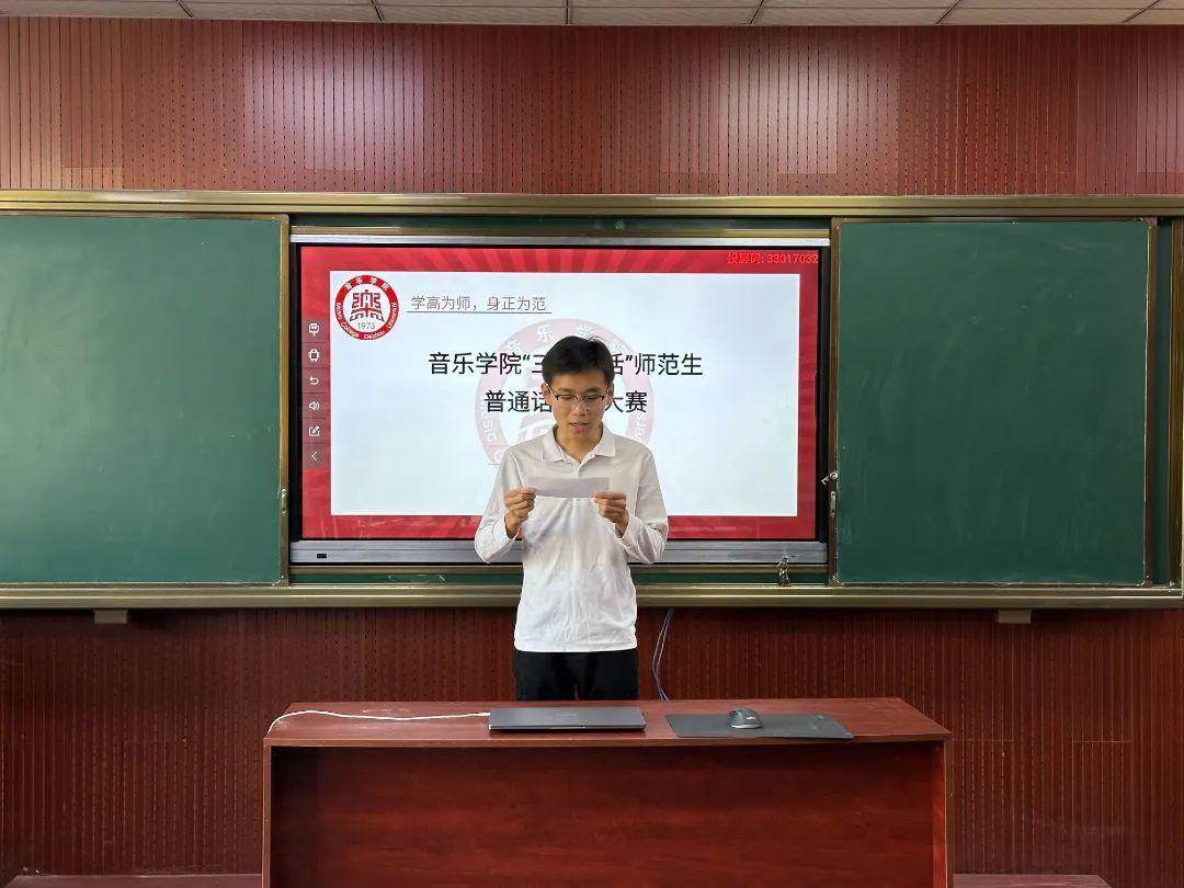 为进一步提高音乐学院师范生的专业素养和综合素质,全面提升师范生的基本技能,秉承“学高为师、身正为范”的育人宗旨,10月10日下午,音乐学院举办“三字一话”普通话比赛。