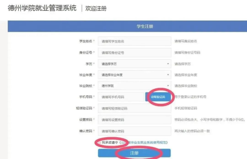 (一)通过“德州学院就业管理系统”进行注册(请使用IE或谷歌浏览器登录)