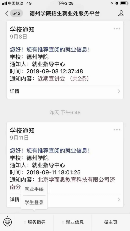 (二)手机端投递简历(关注德州学院招生就业处服务平台)