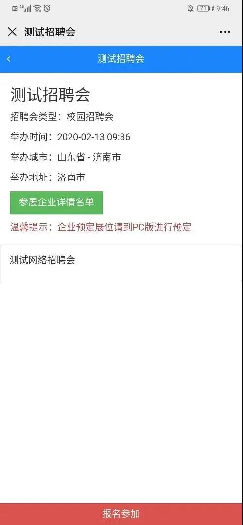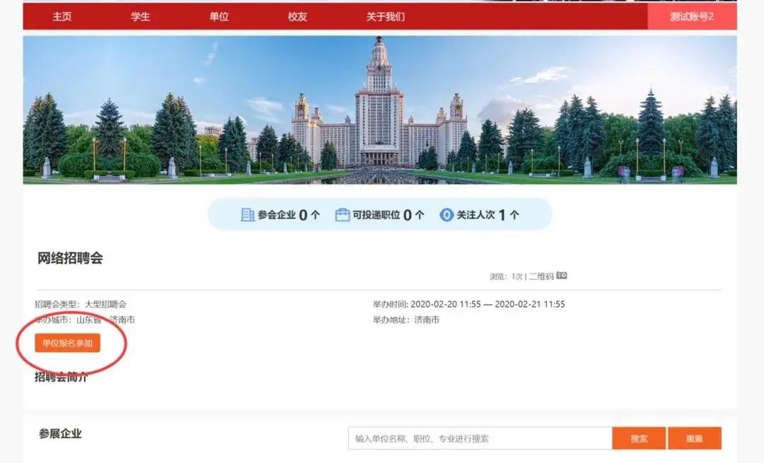 方法二:单位进入网络招聘会大厅点击单位报名参加即可