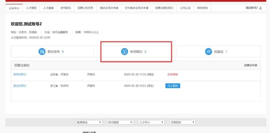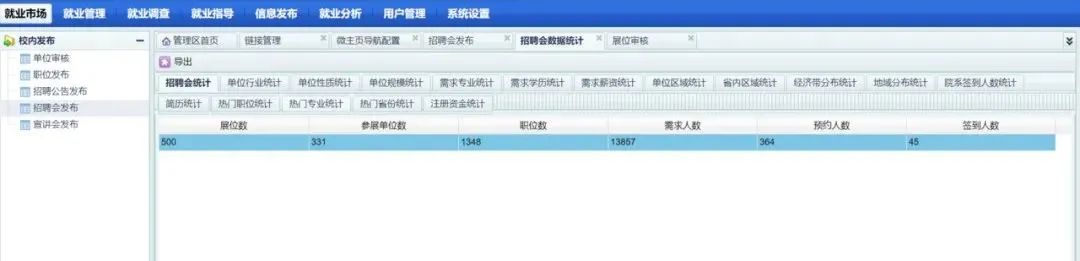 单位报名成功并且学校管理员审核通过之后,单位可以维护网络招聘会简历接收的数据。