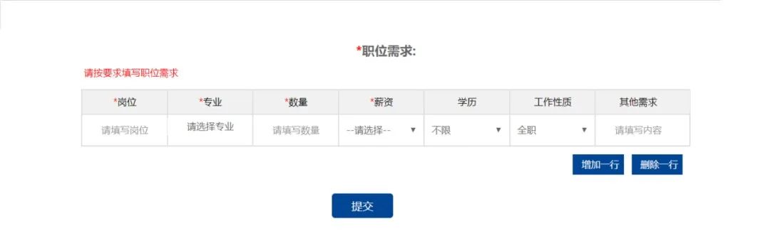 单位报名需填写简历投递邮箱、招聘部门电话还有招聘岗位等需求。