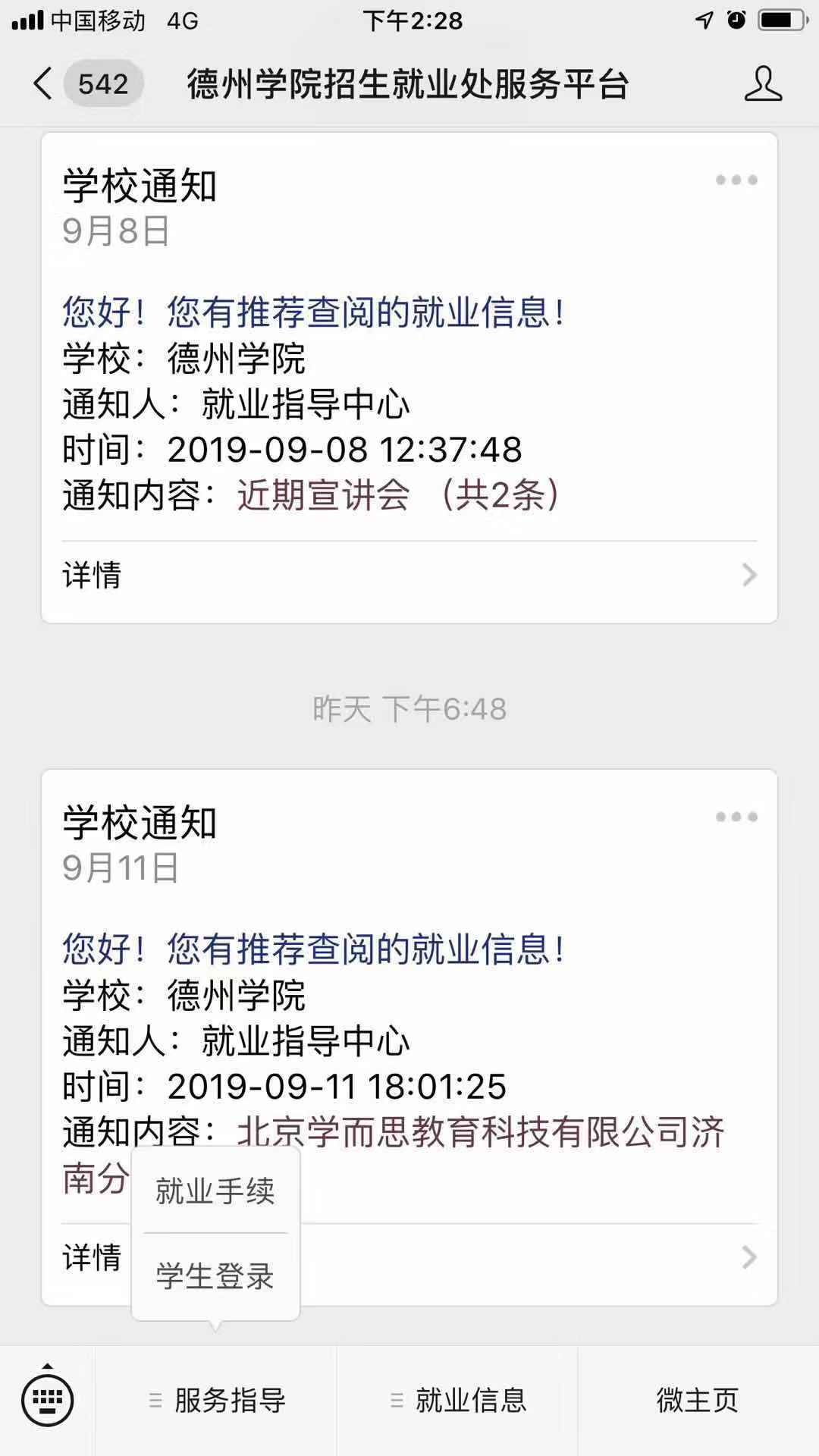 (二)手机端投递简历(关注德州学院招生就业处服务平台)