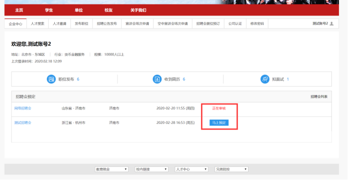 1、用人单位参加网络招聘会