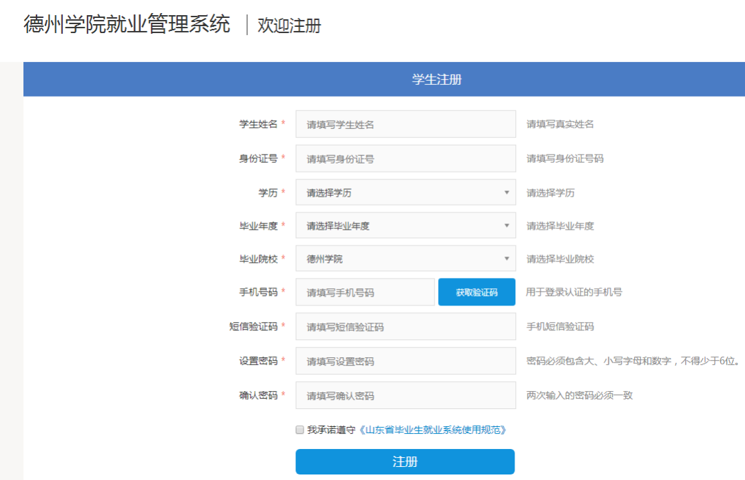 (一)通过“德州学院就业管理系统”进行注册 (请使用IE或谷歌浏览器登录)