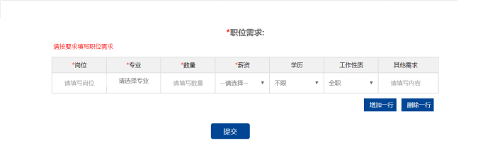 单位报名需填写简历投递邮箱、招聘部门电话还有招聘岗位等需求。