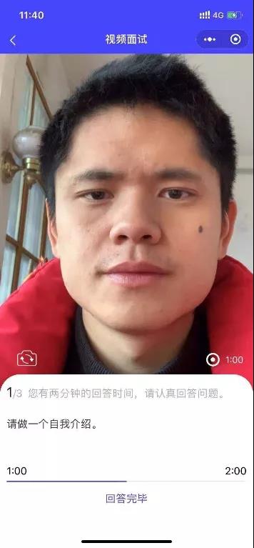 学生手机扫码登录视频小程序,按向导完成视频面试。