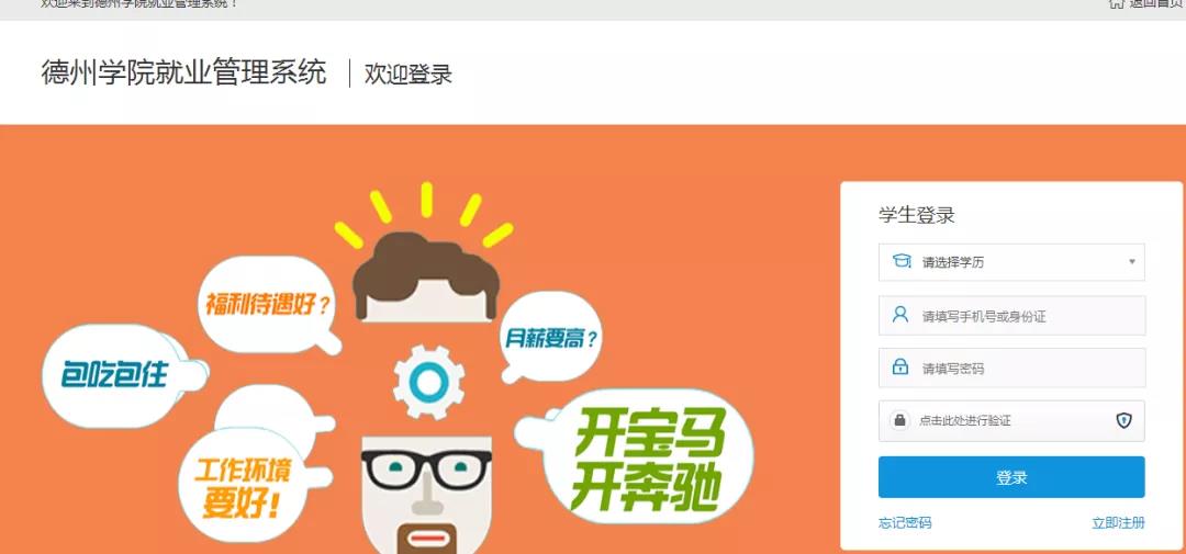 (一)通过“德州学院就业管理系统”进行注册(请使用IE或谷歌浏览器登录)