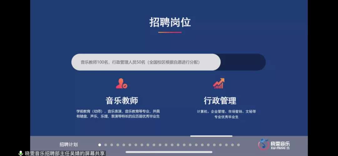 5月22日晚,音乐学院邀请晓雯音乐教育开展线上专场招聘,依托腾讯会议举办了一场生动的空中宣讲会。音乐学院党总支副书记贺昱、晓雯音乐全国招聘负责人吴婧主任及百余名2020届毕业生参加此次宣讲会。