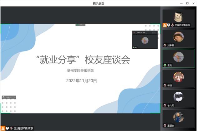 为促进在校学生尽早明确努力方向,树立正确奋斗目标,认清当前就业创业形势,合理规划未来发展。11月20日,音乐学院通过腾讯会议举办线上“职来职往·就业分享”优秀校友职业规划分享交流会。