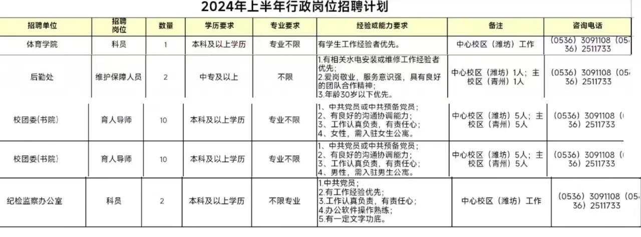 青鸟计划·就业服务专栏(二十四)|潍坊理工学院2024年上半年教职工招聘公告