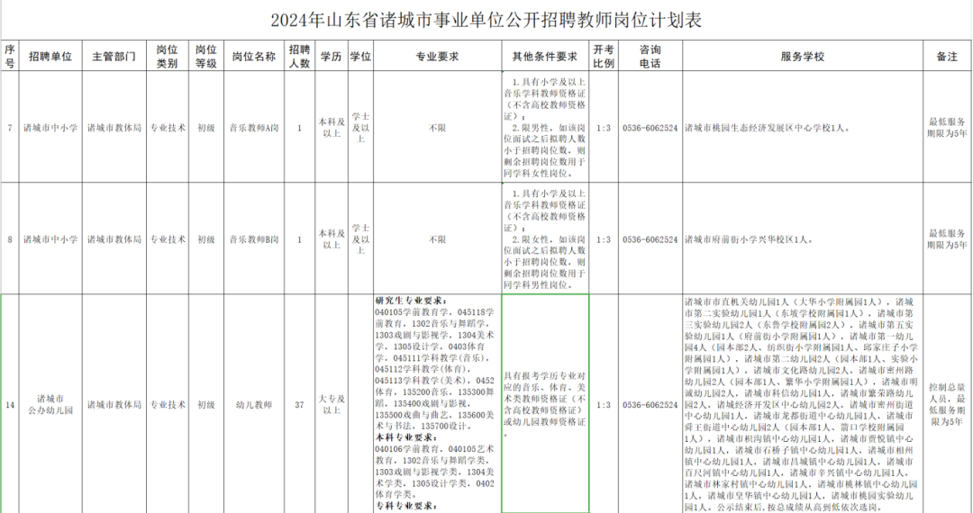 2024年山东省潍坊诸城市事业单位公开招聘教师简章
