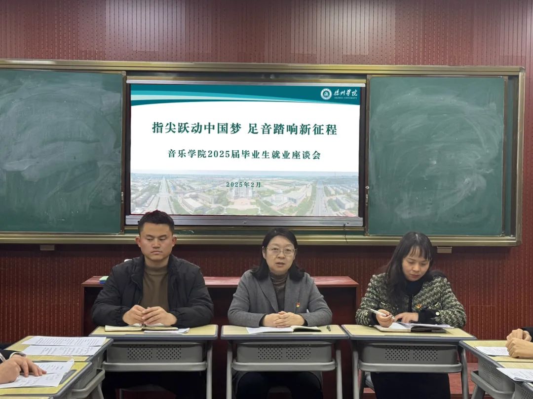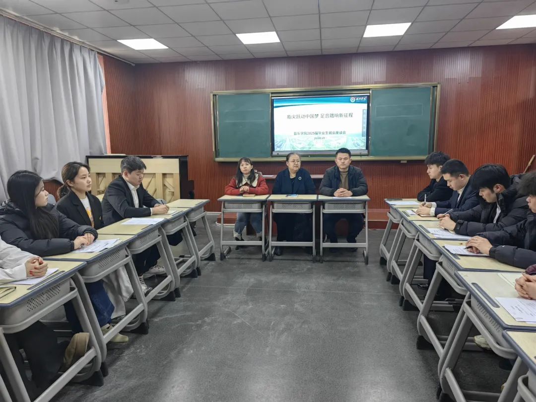 为扎实推进2025届毕业生就业工作,助力毕业生高质量充分就业,2025年2月底至3月初,音乐学院以“指尖跃动中国梦,足音踏响新征程”为主题开展2025届毕业生就业座谈会系列活动。学院党委相关负责人、团委书记、辅导员以及毕业生参加活动。