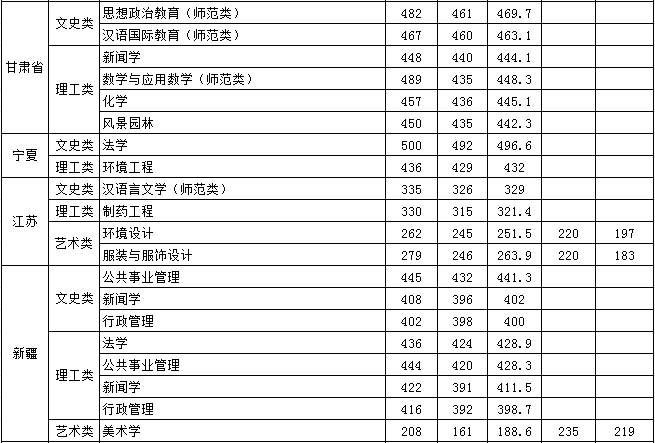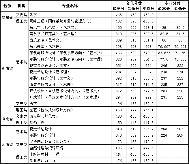 2016年校企合作本科文史、理工类各专业录取分数统计表